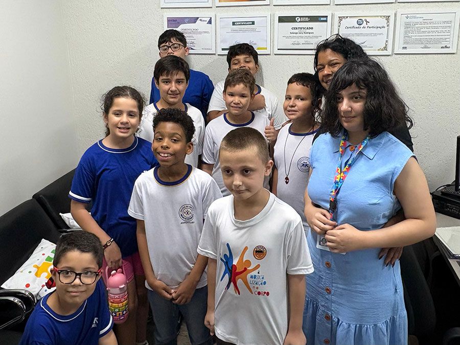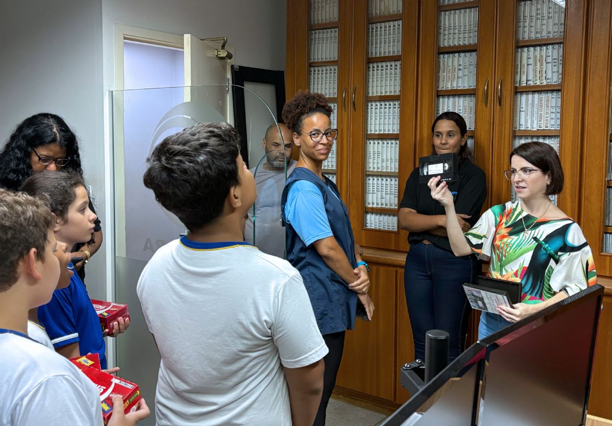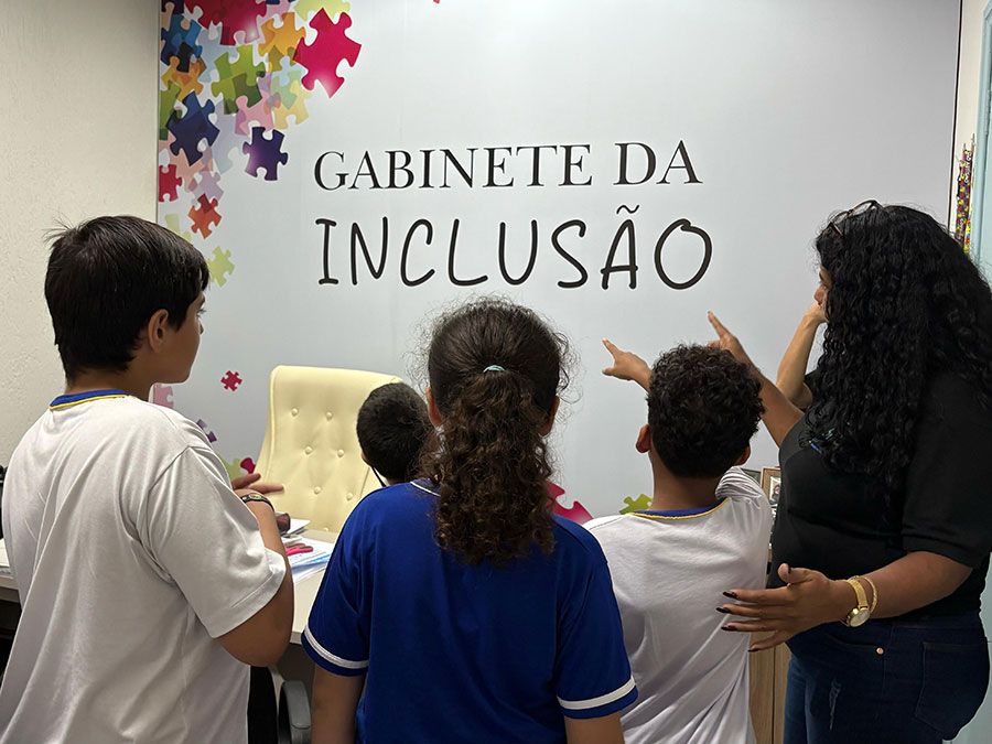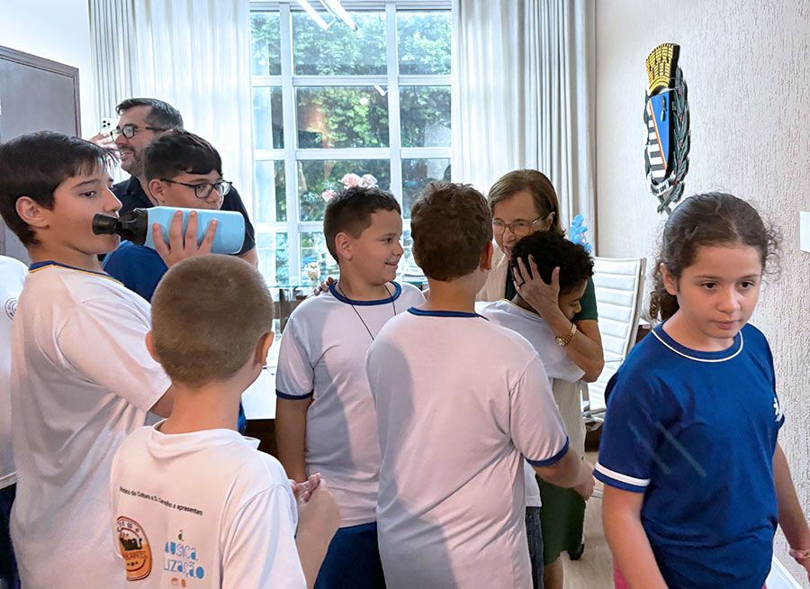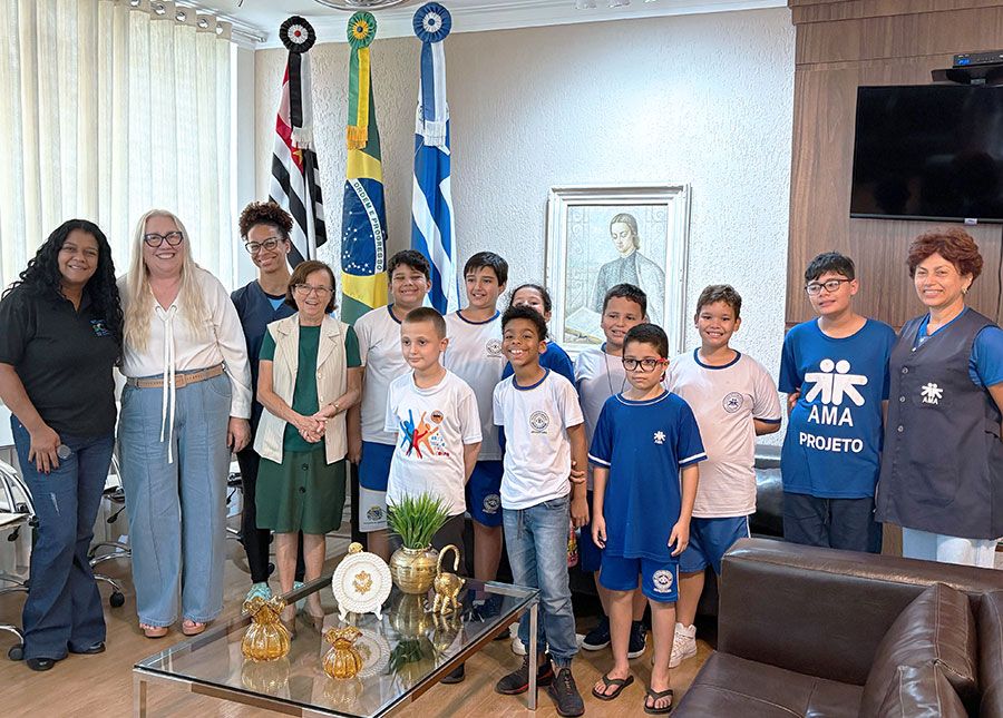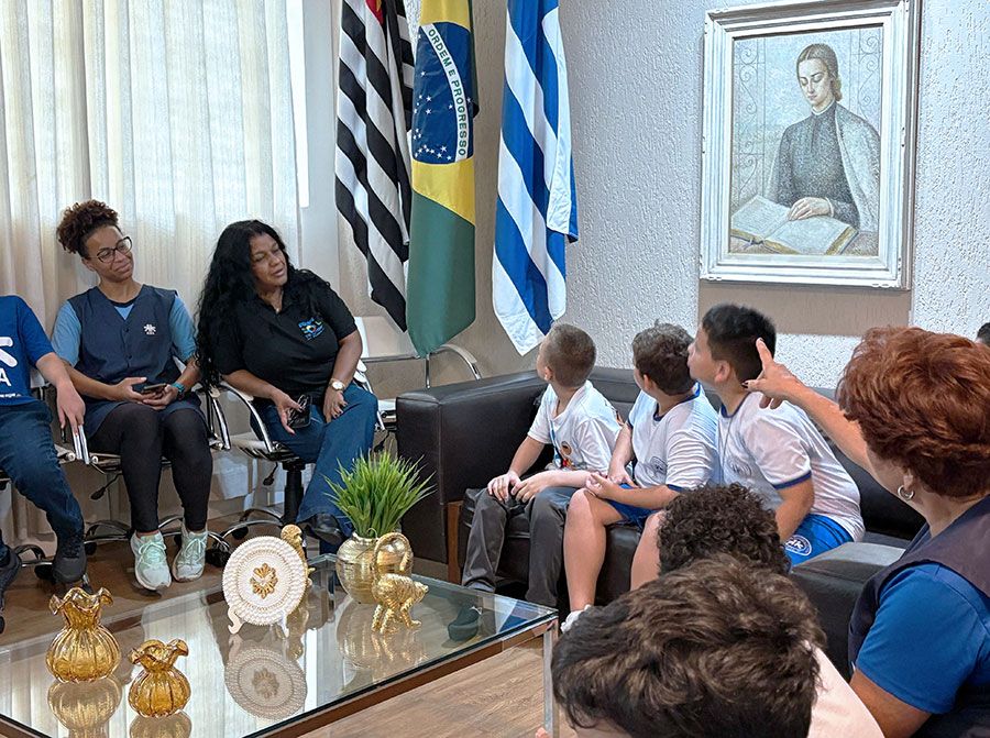 A parlamentar recebeu as crianças no Plenário da Câmara e apresentou a elas as dependências do Poder Legislativo. Na sala da presidência, os visitantes conheceram a presidente da Mesa Diretora, vereadora Edna Flor (Podemos).