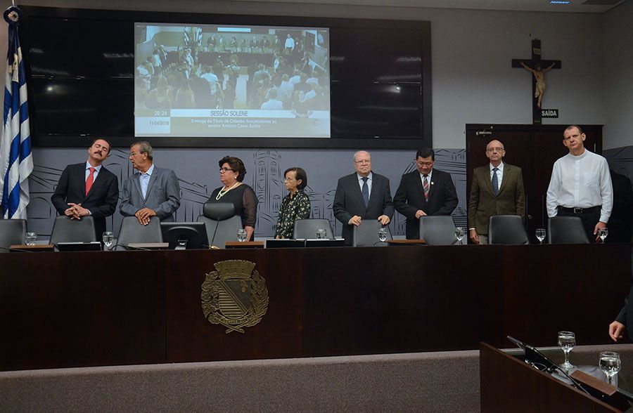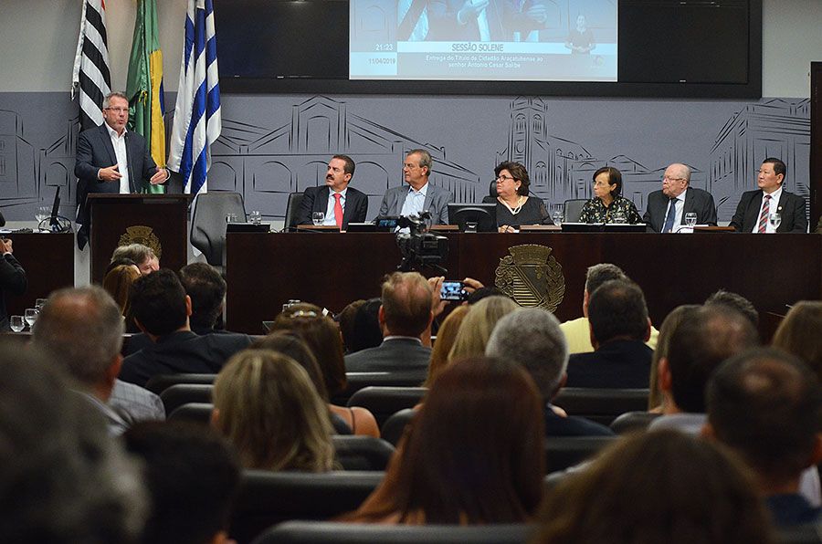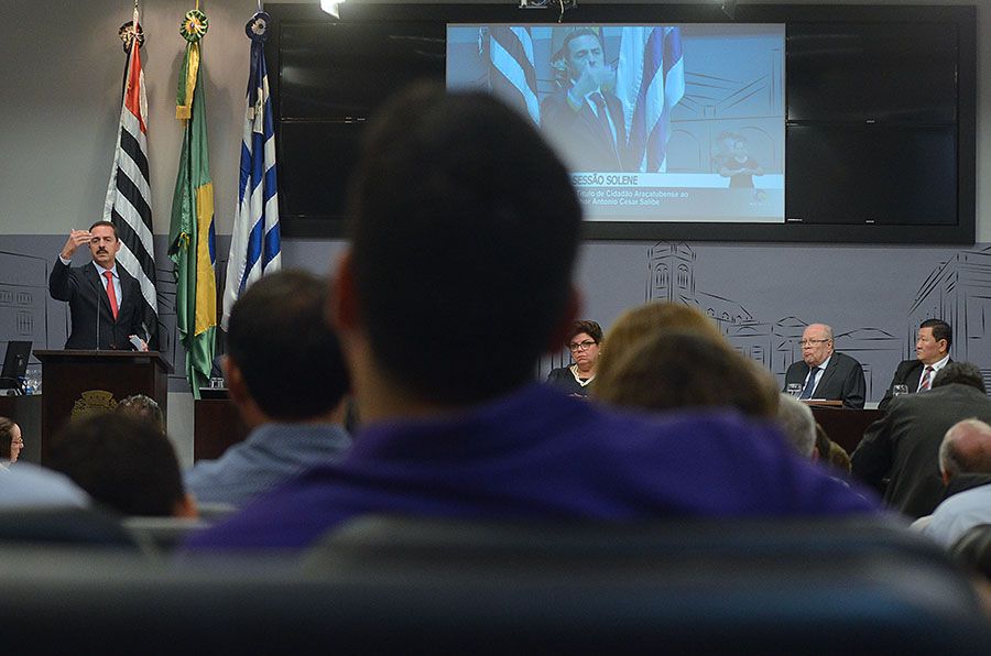 Durante a solenidade, um vídeo institucional produzido pela TV Câmara contou a trajetória do homenageado. “Estou aqui em Araçatuba desde 2 de dezembro de 1980. Fico muito agradecido por esse título”, destacou o homenageado Antonio Cesar Salibe.
