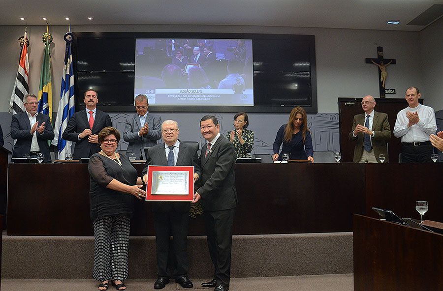 A honraria foi apresentada por Márcio Saito (PSDB), que exerceu o mandato de vereador entre 9 de março de 2017 e 2 de dezembro de 2018. “Foi com muita satisfação que conseguimos aprovar o projeto de decreto legislativo que permitiu essa homenagem hoje”, declarou o autor da honraria.
