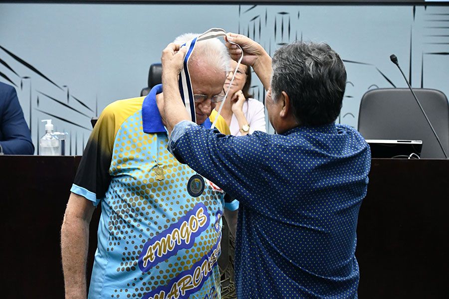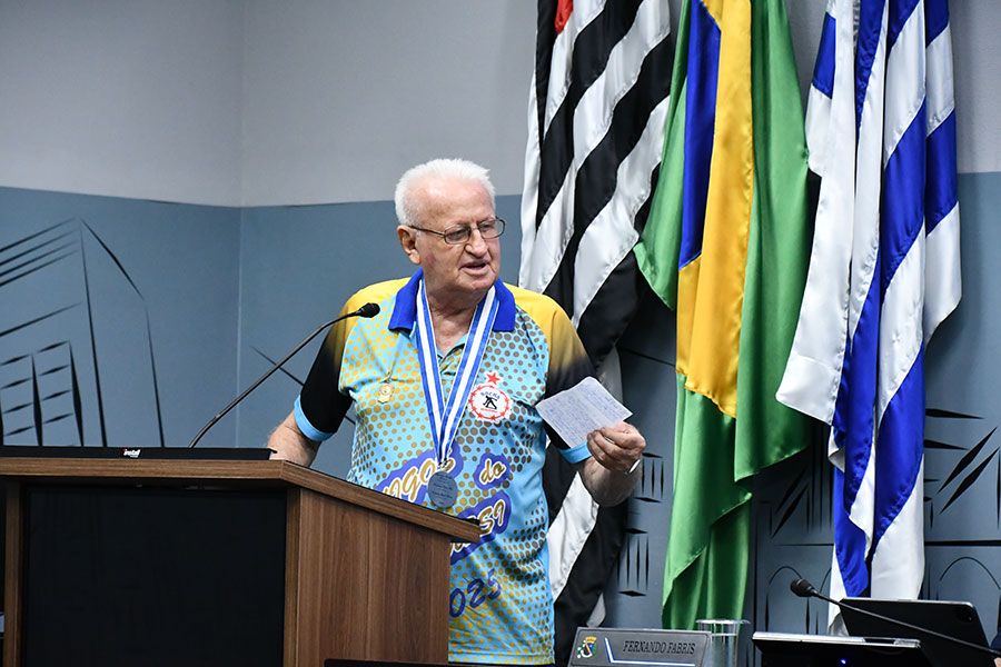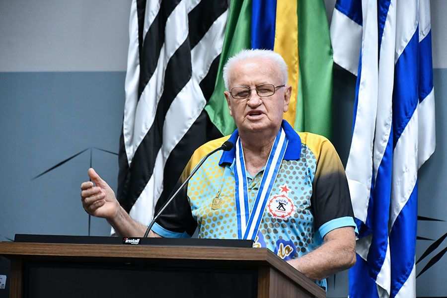 O atleta veterano de bocha Aparecido Bazilio Marcussi foi homenageado nesta segunda-feira (23) com a entrega da “Medalha Esportiva Cidade de Araçatuba” realizada na sede do Legislativo local.