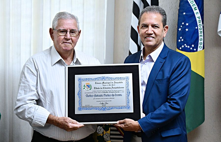 O secretário municipal de Desenvolvimento Econômico de Birigui, Carlos Antônio Farias de Souza, é o mais novo cidadão araçatubense. Ele foi condecorado com a honraria durante um ato solene realizado no gabinete da Presidência da Casa na tarde desta quarta-feira (19).
