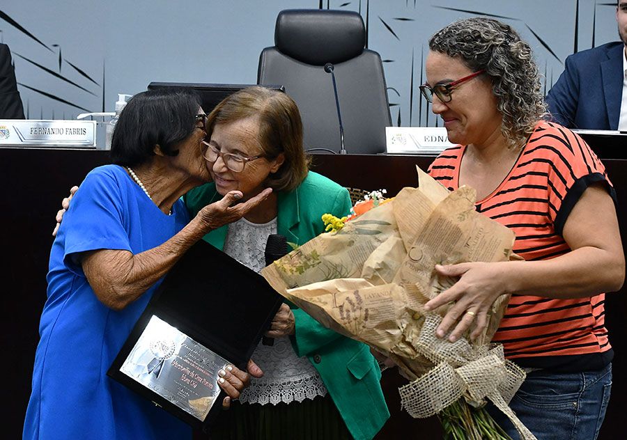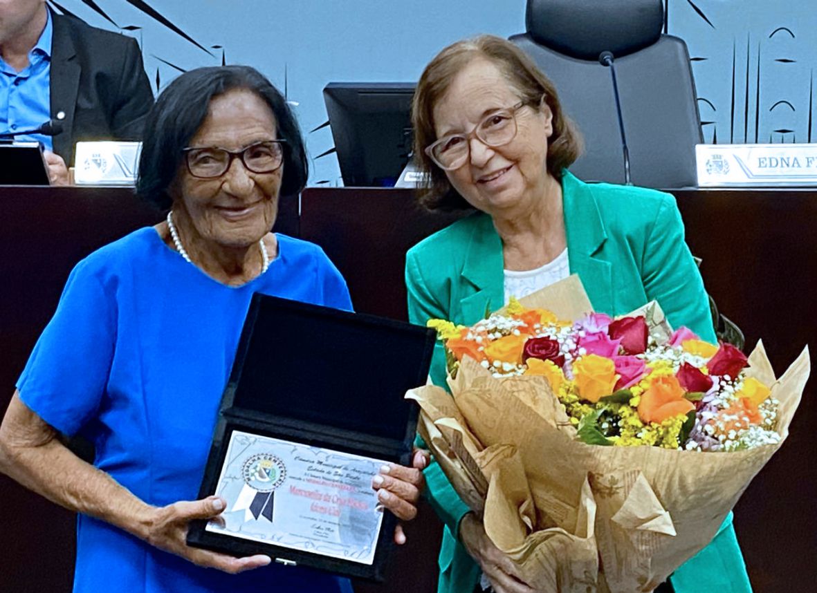 A presidente da Câmara e autora da homenagem, vereadora Edna Flor, ressaltou a importância da Medalha Centenária. “É a primeira sessão com esse formato novo para homenagear as pessoas que completaram 100 anos. Nós fizemos uma mudança para entregar durante a sessão ordinária e queremos agradecer a presença da homenageada e de todos os seus familiares”, destacou.