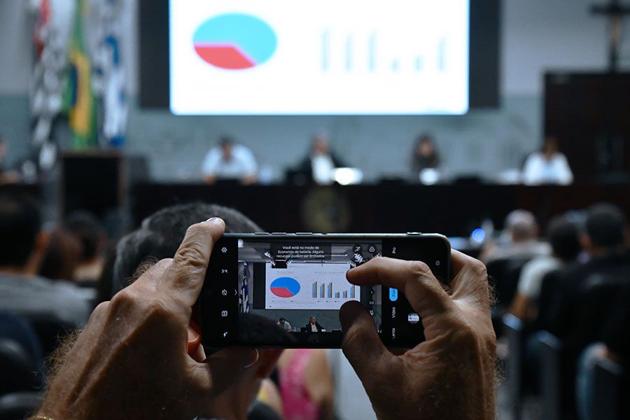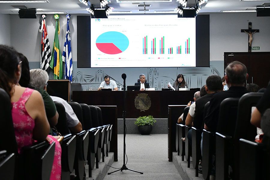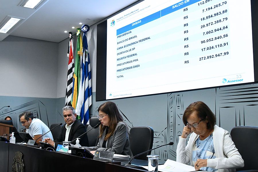 Após a exibição do balanço fiscal, a secretária da Fazenda, Cláudia Sato, respondeu a perguntas dos vereadores Fernando Fabris (PL), Luís Boatto (Solidariedade) e da vereadora Edna Flor (Podemos) e de representantes da sociedade civil.
