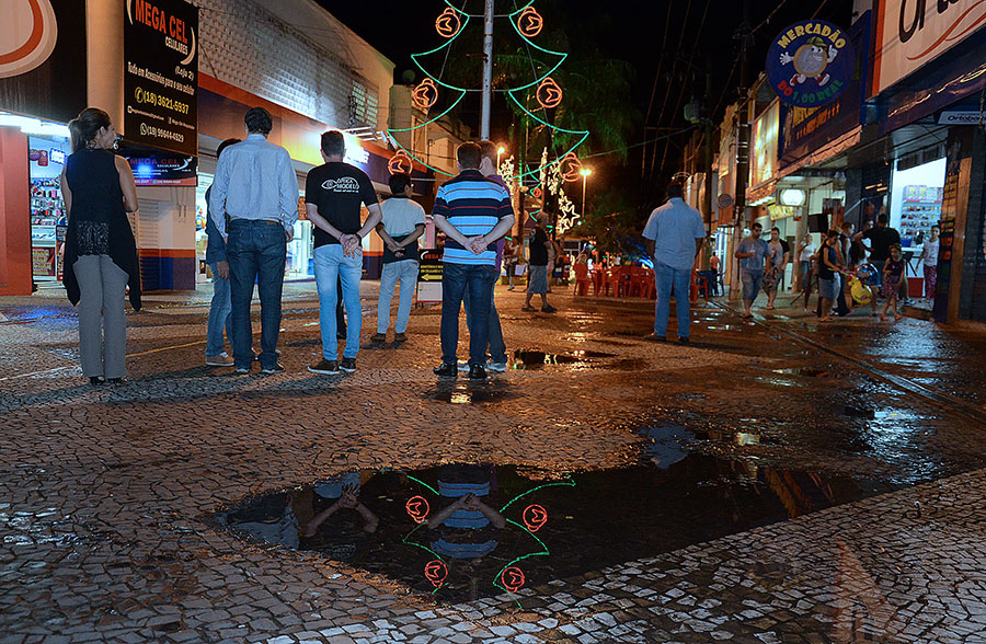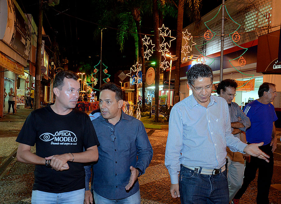 O presidente da Câmara Municipal de Araçatuba, vereador Cido Saraiva (PMDB), o prefeito Cido Sério (PT) e secretários municipais visitaram o calçadão, na noite de terça-feira (08/12), para conhecer de perto a decoração de Natal feita no local. O convite foi feito pelo presidente da Alca (Associação dos Lojistas do Calçadão de Araçatuba), o comerciante César Braga.