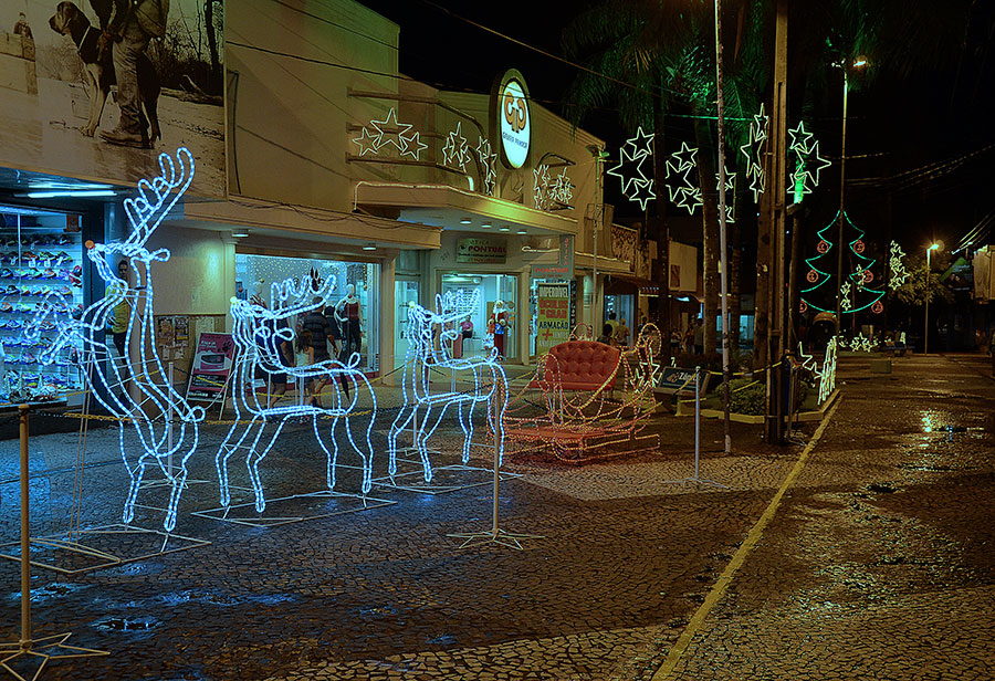 No espaço, árvores, postes e fachadas ganharam ornamentos luminosos no formato de estrelas e de árvores de natal. Outros enfeites em forma de anjos, de trenó e de Papai Noel foram colocados em locais estratégicos ao longo do calçadão. O presidente da Alca estava feliz com o resultado. “Eu sou comerciante aqui há mais de 20 anos e, em todo esse período, nunca vi este espaço tão bonito na época de Natal”, disse.