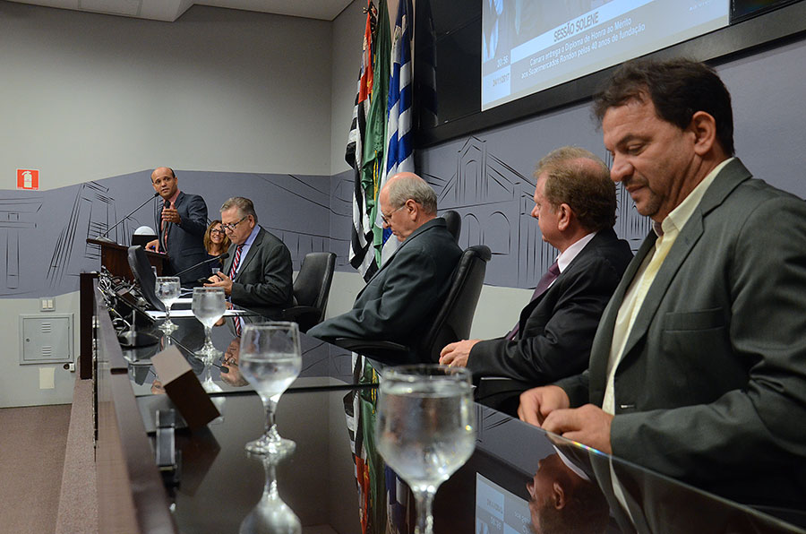 A honraria, de autoria dos vereadores Gilberto Batata Mantovani (PR) e Rivael Papinha (PSB), foi entregue aos irmãos Francisco e Antônio Devigo, na presença de familiares, amigos e colaboradores da empresa. Os vereadores Cido Saraiva (PMDB) e Denilson Pichitelli (PSL) também prestigiaram o evento.