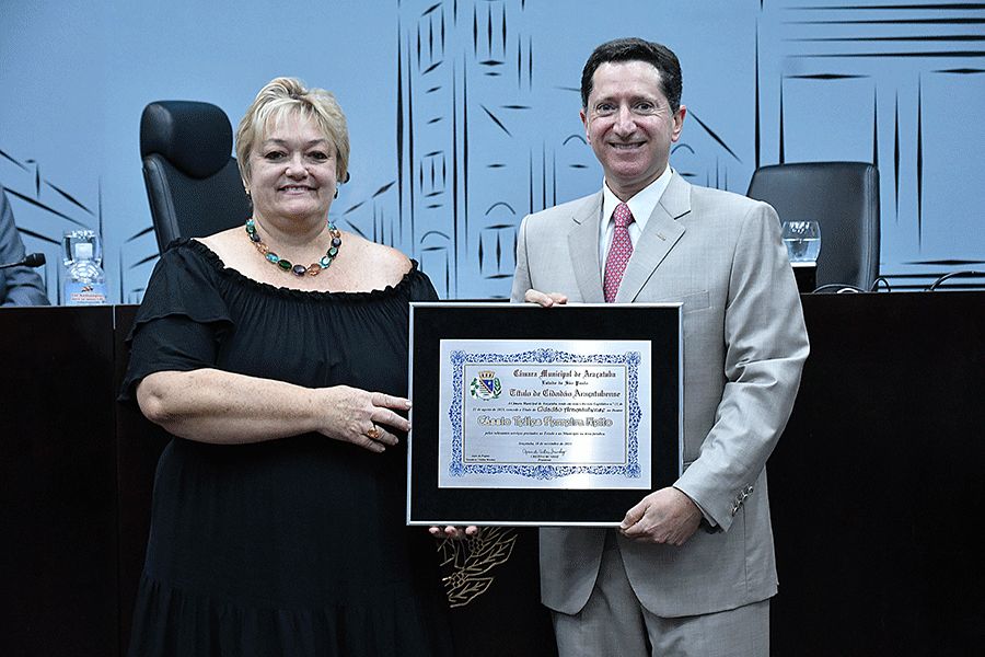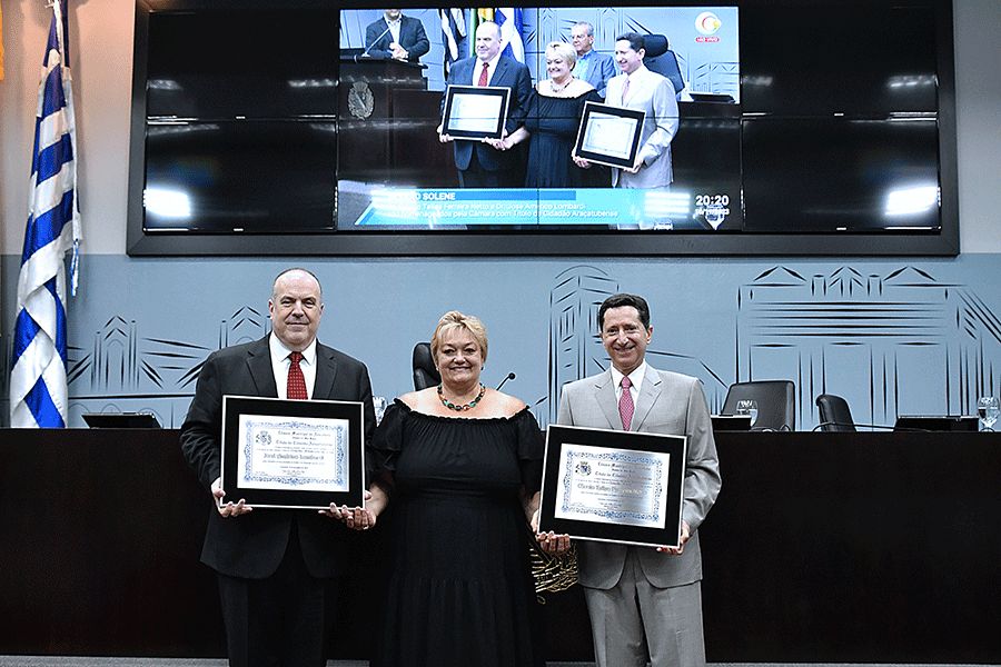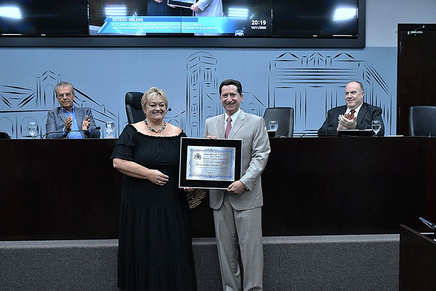 “Eu sempre busquei levar as coisas profissionais com amizade. Há coisas que não têm preço: a amizade, a família e o amor”, afirmou Cássio Telles Ferreira Netto. “Receber essa homenagem de Araçatuba foi maravilhoso. Vou guardar esse título com muito carinho”, disse na tribuna José Américo Lombardi.