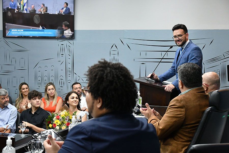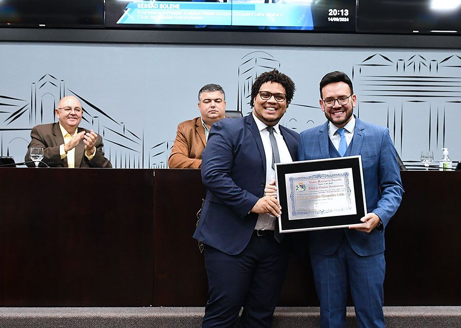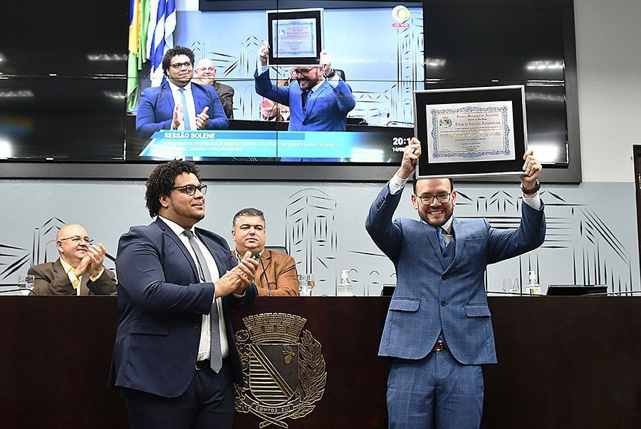 Em sessão solene realizada na noite desta terça-feira (14/05), a Câmara Municipal de Araçatuba homenageou com o Título de Cidadão Araçatubense o empresário do setor de energia solar, professor e pastor Willian Douglas Cerqueira Leite.