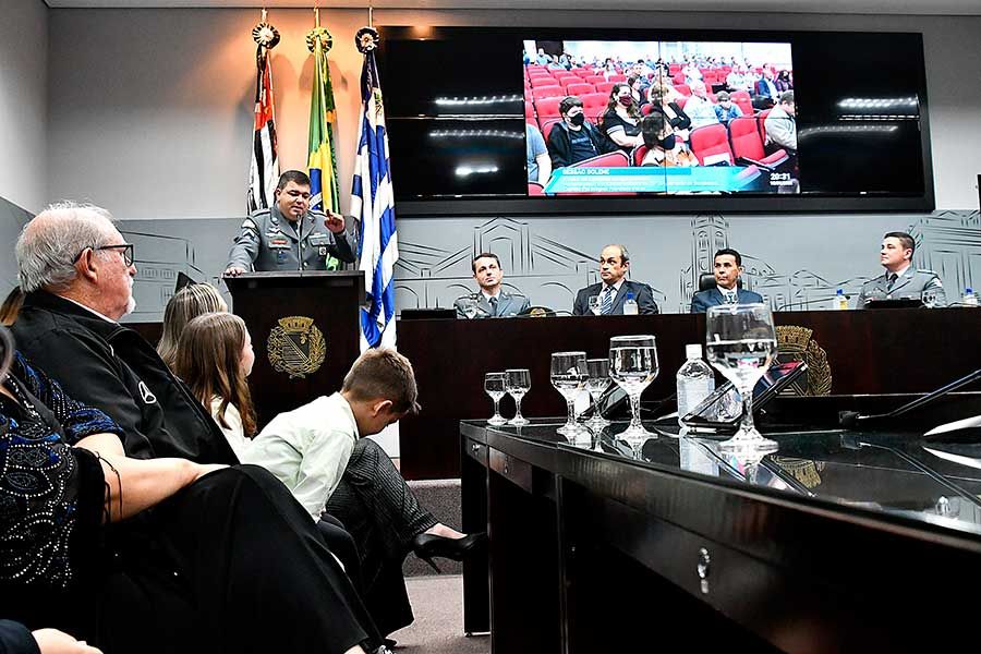 Familiares, amigos e integrantes da corporação que atuam no município e na região compareceram à sede do Legislativo local para prestigiar a cerimônia, que foi transmitida ao vivo pela TV Câmara e pelas redes sociais da Casa. No Plenário, a Banda Regimental da Polícia Militar de Araçatuba executou os hinos Nacional e de Araçatuba.