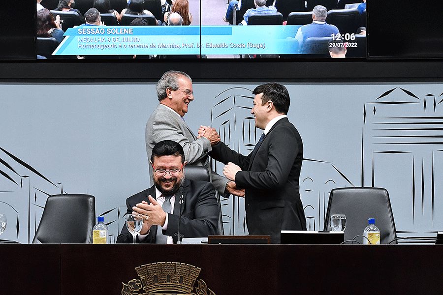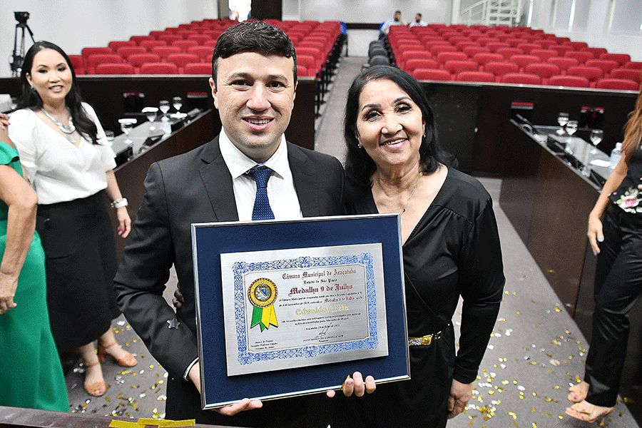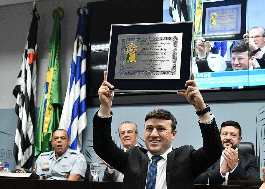 Com direito às galerias e ao plenário da Câmara Municipal de Araçatuba totalmente ocupados, o tenente da Marinha do Brasil Prof. Dr. Edwaldo Costa (Guga) recebeu hoje (29), pela manhã, a Medalha 9 de Julho – honraria máxima concedida pelo Legislativo a pessoas nascidas no município com relevantes serviços prestados à população local.