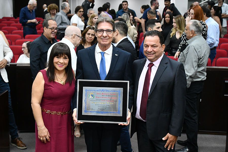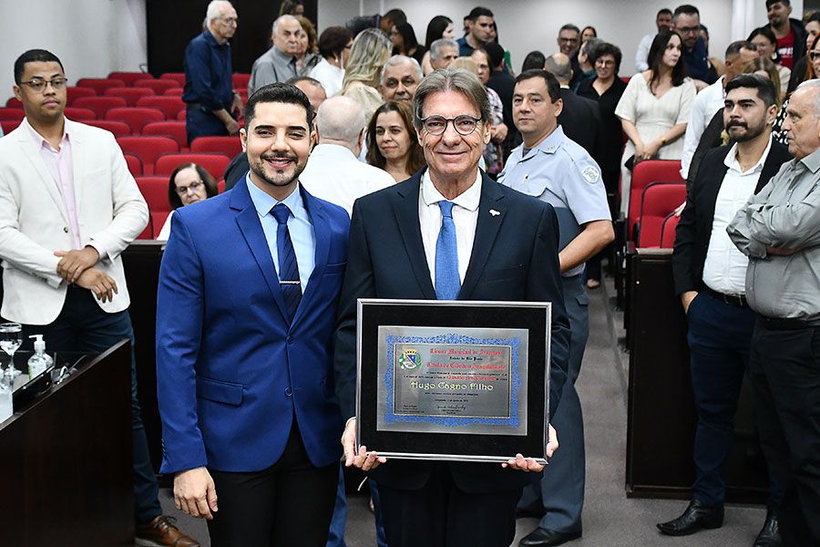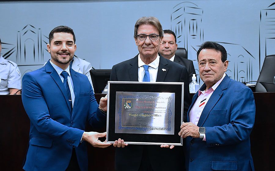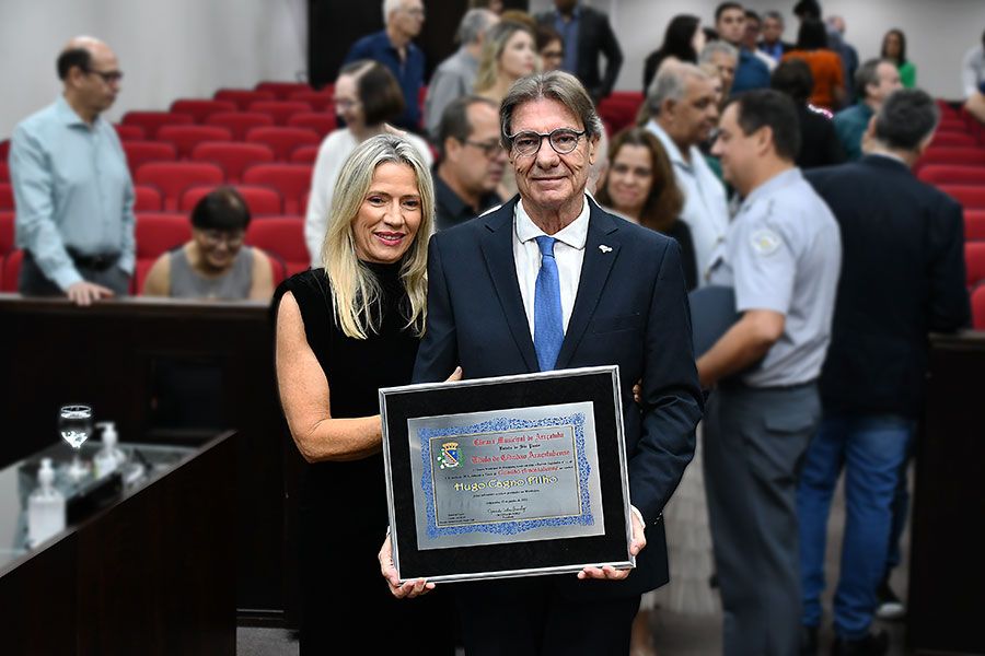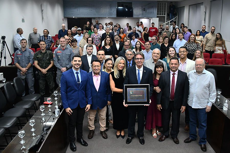 A cerimônia, que foi transmitida ao vivo pela TV Câmara e redes sociais do Legislativo, visa reconhecer os relevantes serviços prestados pelo homenageado ao município. Assinam a honraria os vereadores Luís Boatto (Solidariedade) e Antônio Edwaldo Dunga Costa (União Brasil).