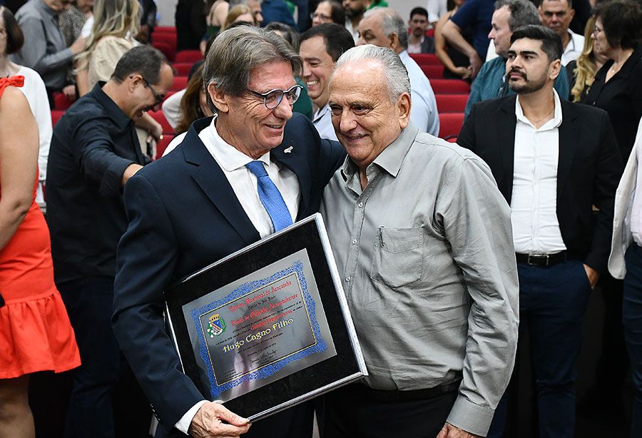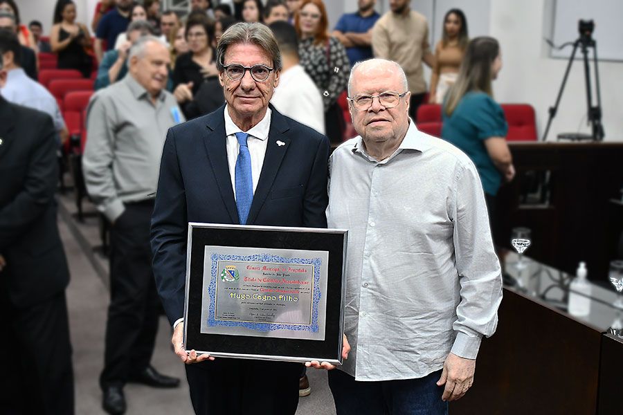 A trajetória do homenageado foi apresentada em um vídeo elaborado pela TV Câmara. Nascido em Ribeirão Preto (SP), Hugo Cagno Filho possui graduação em Agronomia pela Unipinhal em 1974 e pós-graduação pela Esalq-USP de Piracicaba (SP). Já publicou dois livros sobre gestão de empresa familiar.