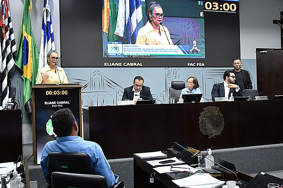 A psicóloga Elaine Cabral usou o espaço da Tribuna Livre da Câmara de Araçatuba nesta segunda-feira (15) para convidar agentes políticos e a população em geral para refletir sobre a necessidade de construir caminhos em busca da valorização da saúde mental e emocional das pessoas.