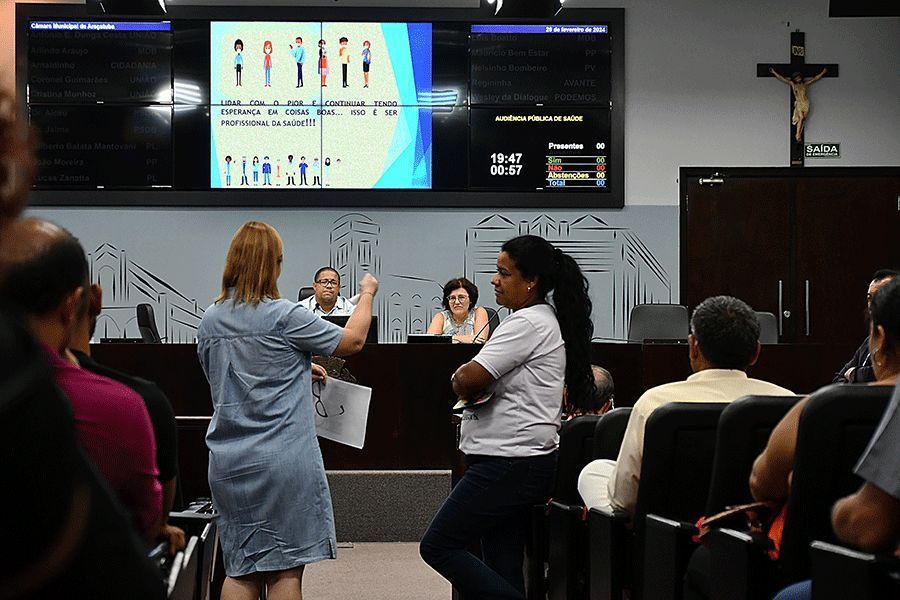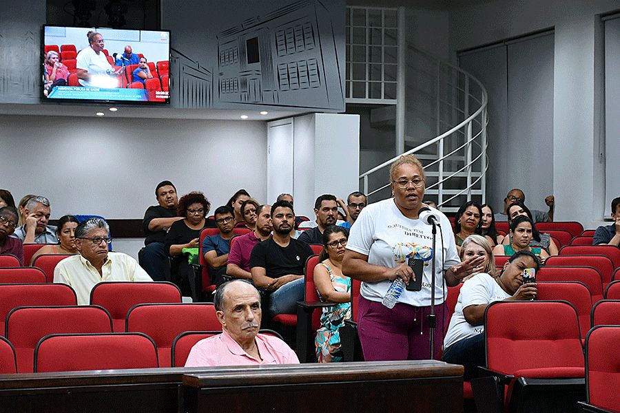 Na fase de perguntas, o público trouxe vários questionamentos sobre a falta de pediatras na rede básica de saúde, casos de pacientes que precisam ter acesso ao canabidiol, a falta de médicos especialistas nas Unidades Básicas de Saúde, a falta de emergência odontológica, a necessidade de contratação de mais profissionais de saúde e reclamações sobre a falta de visitas de médicos da família em condomínios.