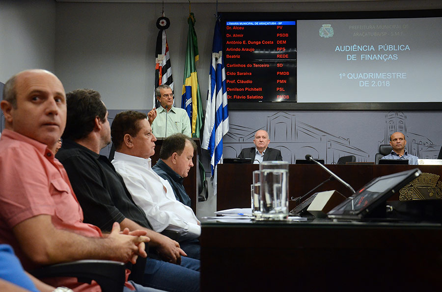A audiência pública foi conduzida pelo presidente da Câmara, vereador Rivael Papinha (PSB), sendo o relatório das contas apresentado pelo secretário municipal da Fazenda, Josué Cardoso de Lima. Também participaram os vereadores Márcio Saito (PSDB), Dr. Jaime (PTB) e Gilberto Batata Mantovani (PR), além do prefeito de Araçatuba, Dilador Borges.