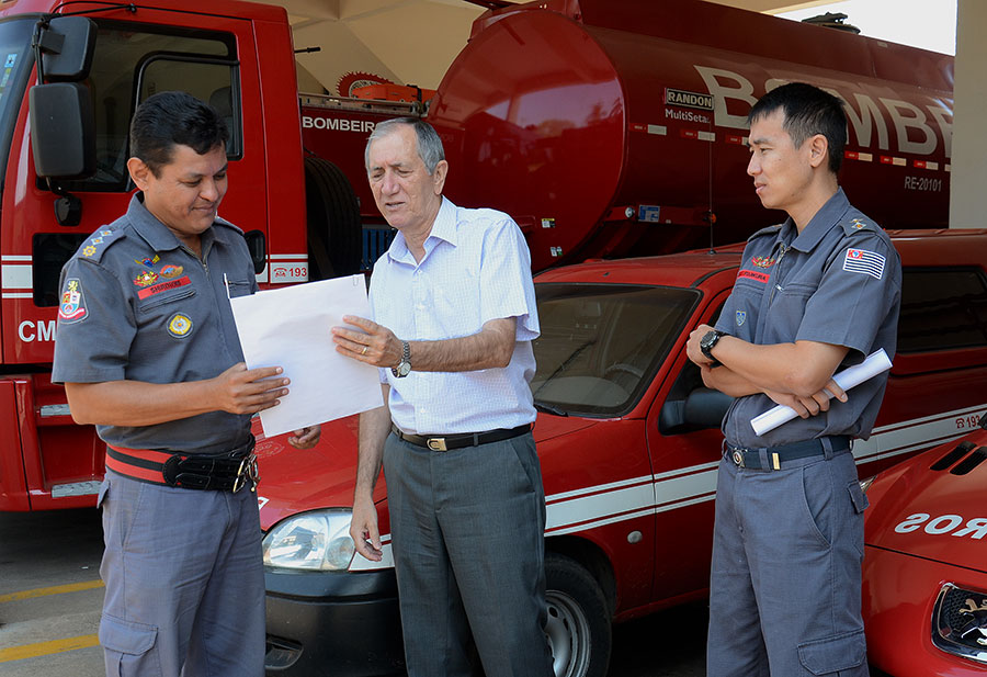 O vereador Cabo Claudino (PT do B) visitou, na manhã de quarta feira (22/10), a sede do 20º Grupamento do de Bombeiros de Araçatuba, no bairro Santana e foi recebido pelo subcomandante da corporação, Major Shirotori. O parlamentar, que acompanha de perto o desenvolvimento do projeto Bombeiro Mirim na cidade, entregou ao militar cópia de uma propositura apresentada por ele na Câmara que pretende instituir o dia do Bombeiro Mirim no município, a ser comemorado, anualmente, em 2 de julho.