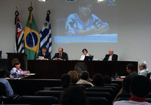 Os vereadores da Câmara Municipal de Araçatuba aprovaram na sessão de segunda-feira (31/08) projeto de lei enviado pela Prefeitura Municipal, que concede aos servidores inativos e pensionistas da Prefeitura e do Daea (Departamento de Água e Esgoto de Araçatuba) um bônus especial de R$ 200,00 em parcela única, a ser paga neste mês de setembro.