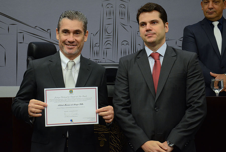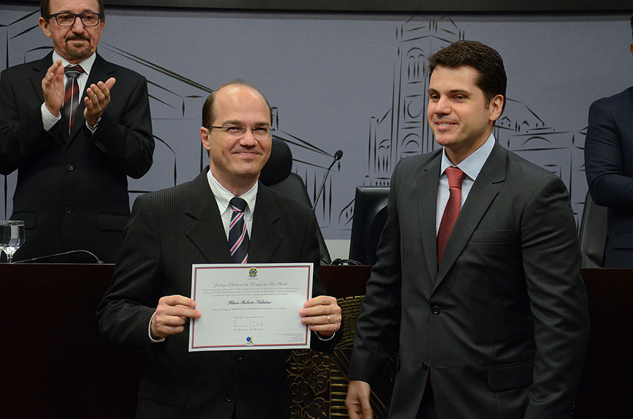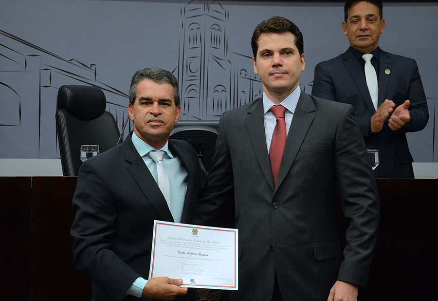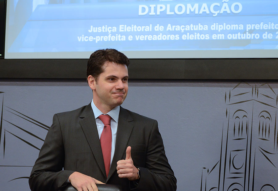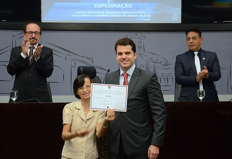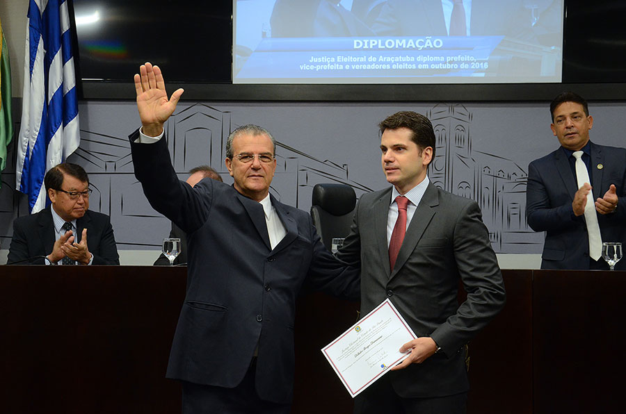 Em cerimônia realizada nesta quinta-feira (15/12) na Câmara, a Justiça Eleitoral de Araçatuba diplomou os vereadores eleitos para a 17ª legislatura (2017-2020). Além dos parlamentares, também foram diplomados o prefeito eleito Dilador Borges (PSDB) e a vice-prefeita Edna Flor (PPS).