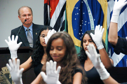Para ampliar a conscientização sobre o projeto, um grupo de meninos e meninas interpretou uma canção temática antiviolência por intermédio de libras - linguagem brasileira de sinais - e voluntários da igreja distribuíram revistas e folhetos para os vereadores e o público presente na sessão.