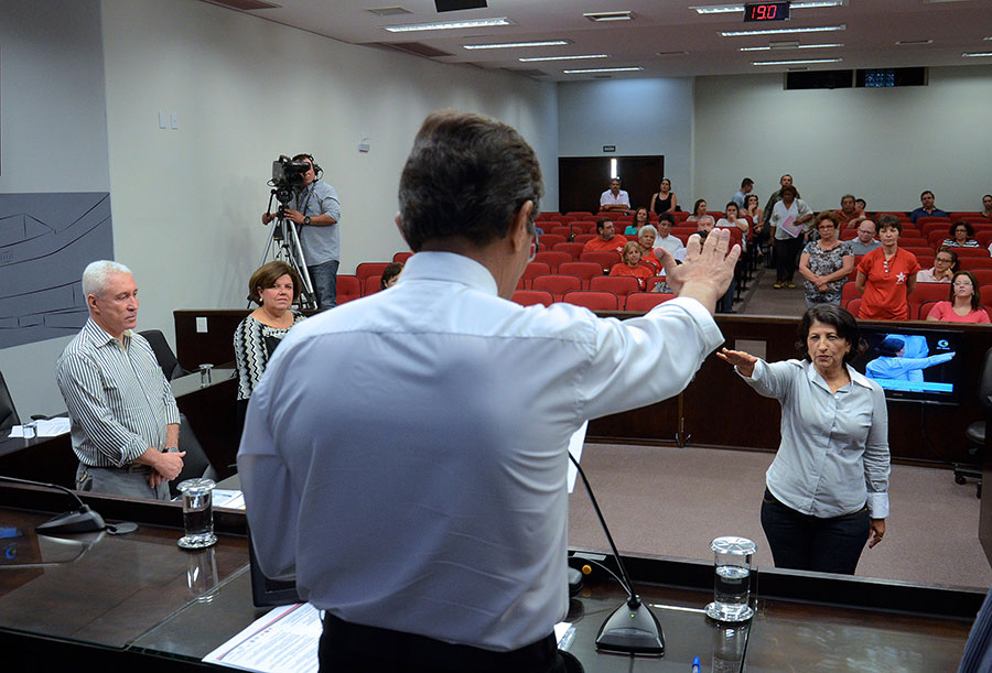 Durante os trabalhos da 37.ª sessão ordinária do ano, realizada na segunda-feira (10/10), a suplente de vereadora Durvalina Garcia (PT) tomou posse como parlamentar na Câmara no lugar do vereador professor Cláudio Henrique da Silva (PMN), que deixou o Legislativo para assumir a Secretaria Municipal de Governo.