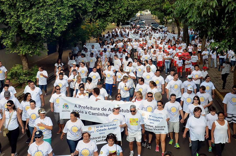 Um apelo pela paz no mundo, foi assim que os rotarianos de Araçatuba resolveram comemorar os 110 anos de fundação do Rotary Internacional com uma passeata que levou às ruas cerca 400 pessoas. As vereadoras Tieza (PSDB), Durvalina Garcia (PT) e o prefeito Cido Sério (PT) participaram de todo o percurso.