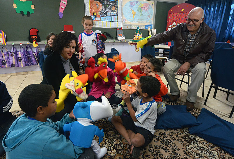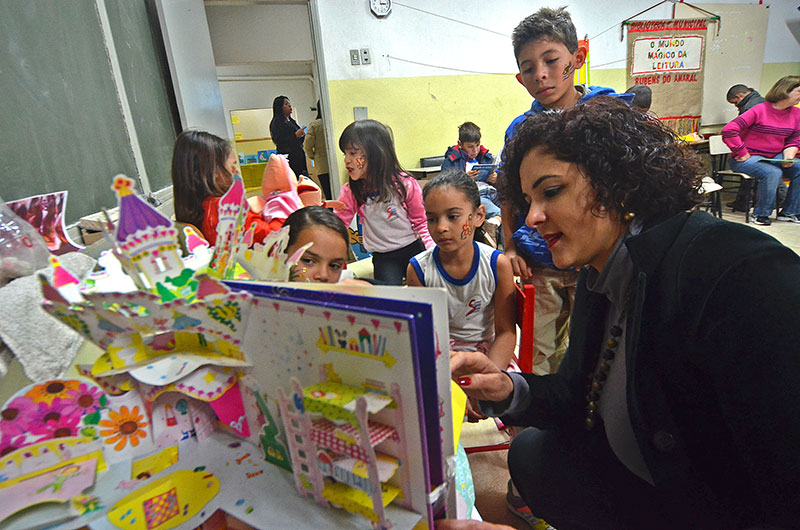 A vereadora Beatriz participou terça-feira (27/08) das festividades de inauguração da bibilioteca na EMEB Hélia Pinholi Mungo, no bairro Morada dos Nobres. As atividades incluíram a realização de uma mostra de releitura das obras da artista plástica Tarsila do Amaral feita por alunos da escola, além de brincadeiras com fantoches e pintura promovidas por funcionários da biblioteca municipal.