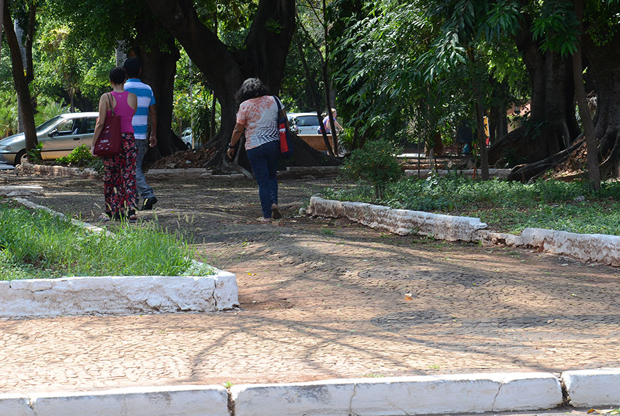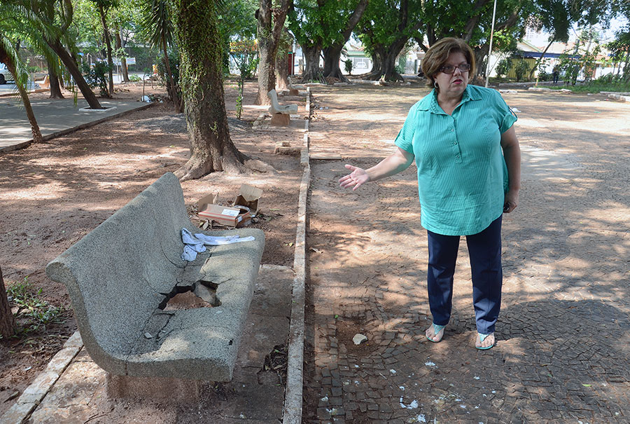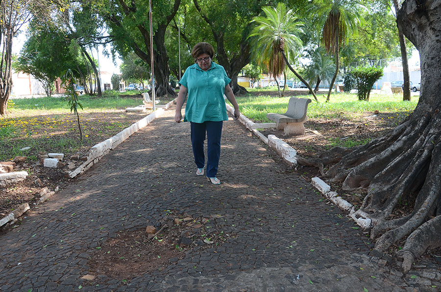 Ao tentar caminhar pela praça, a vereadora pode constatar que o calçamento é todo cheio de ondulações e possui muitos buracos. É difícil para qualquer pessoa transitar com segurança, principalmente os mais idosos, como explicou o aposentado Ermando Francisco de Oliveira, morador do bairro há mais de 40 anos.