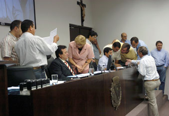 Dos 10 projetos que faziam parte da pauta da quarta sessão extraordinária de 2008, realizada nesta terça-feira, dia 30/12, nove foram aprovados e um não foi considerado objeto de deliberação. Três projetos foram aprovados com emenda, um deles dispõe sobre a nova estrutura administrativa da Câmara Municipal. Pela emenda ficam mantidos os cargos da TV Câmara e reduzido de dois para seis o número de assessores parlamentares.
