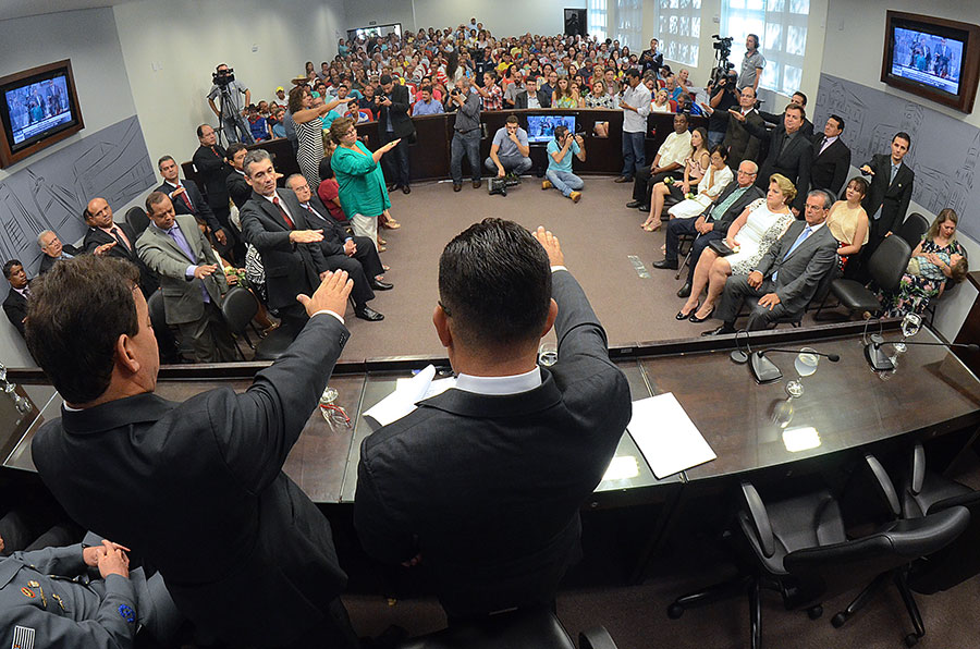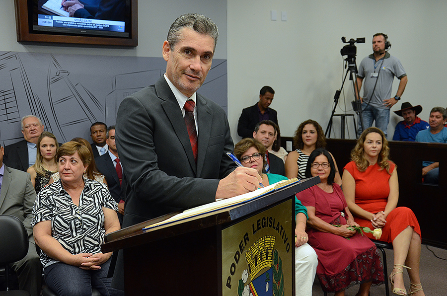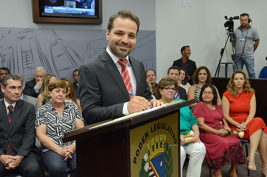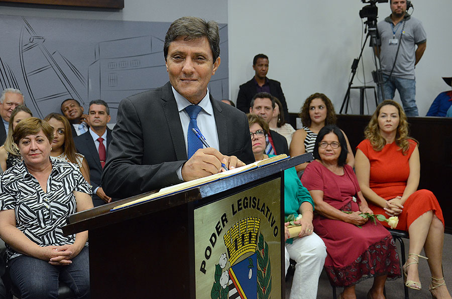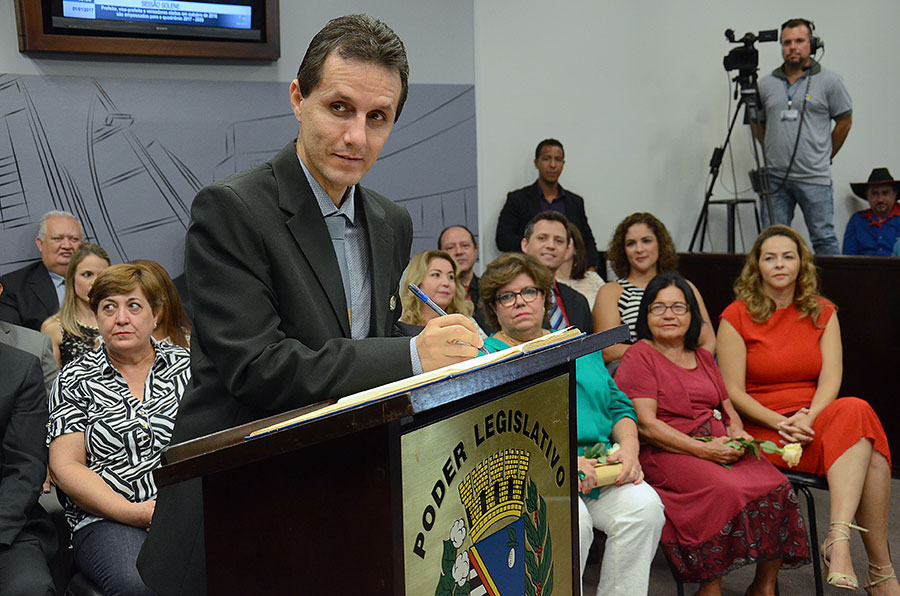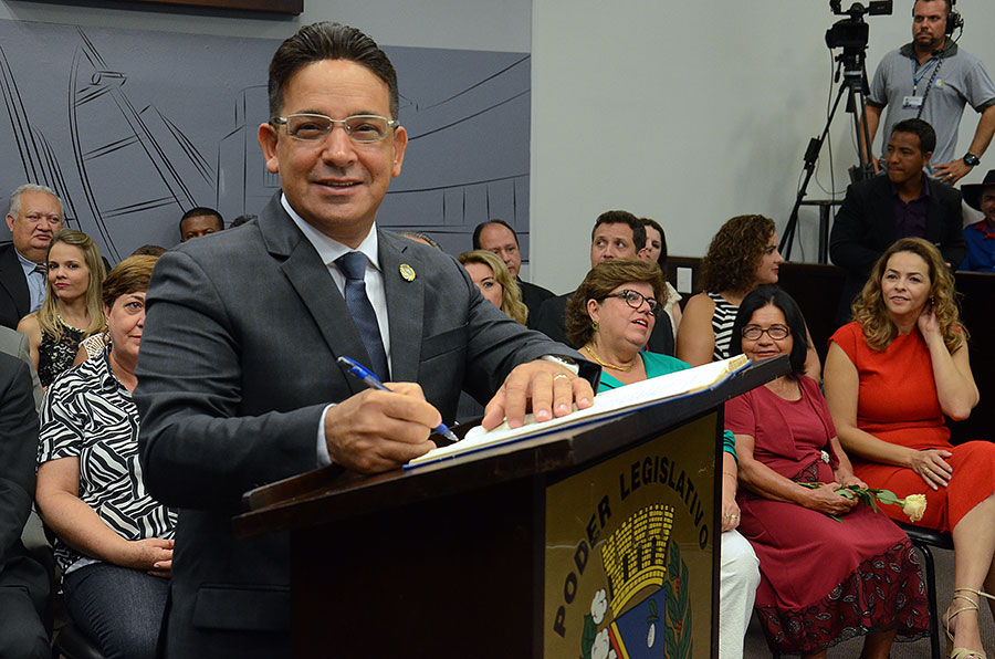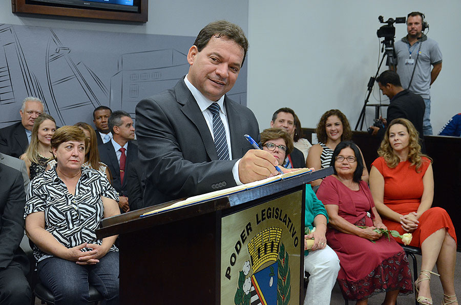 Em sessão solene realizada na Câmara neste domingo (1º/1), foram empossados os 15 vereadores da 17ª legislatura (2017-2020), o prefeito eleito Dilador Borges (PSDB) e a vice-prefeita Edna Flor (PPS).
