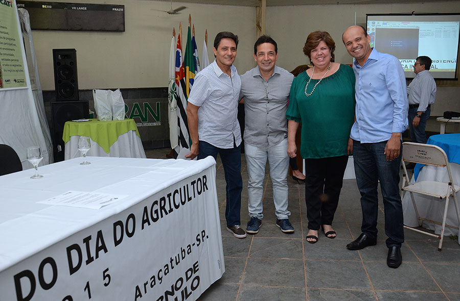 Os vereadores Dr. Jaime (PTB), Cido Saraiva (PMDB), Rivael Papinha (PSB) e Tieza (PSDB) participaram, na manhã desta terça-feira (28/7), do 4º Encontro Regional do Dia do Agricultor no Recinto de Exposições Clibas de Almeida Prado. A data, comemorada hoje, reuniu produtores rurais de Araçatuba e região.